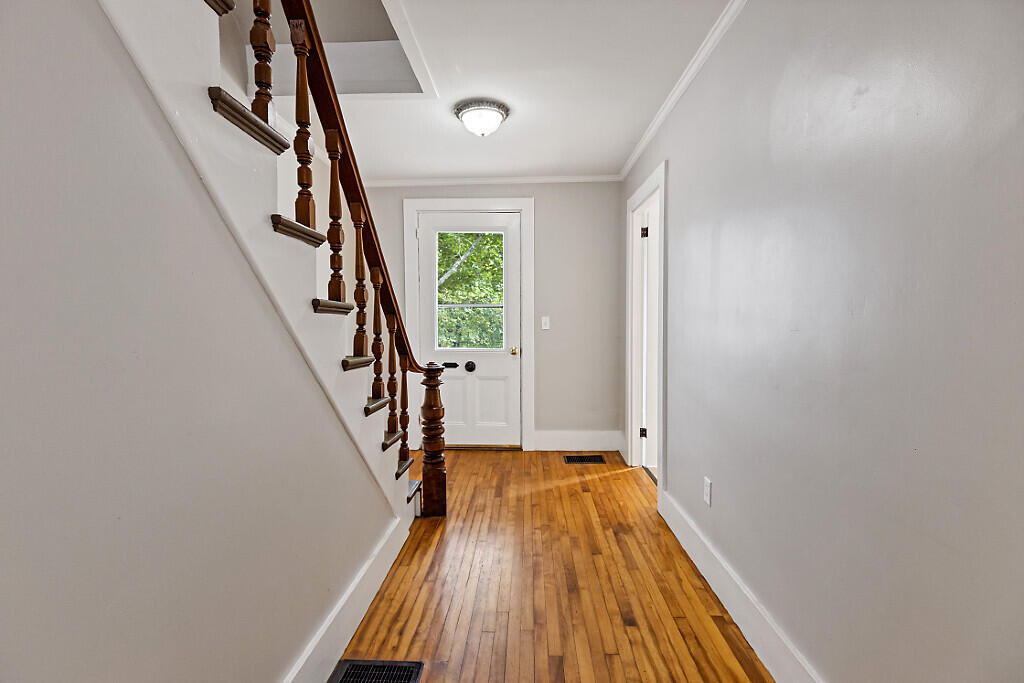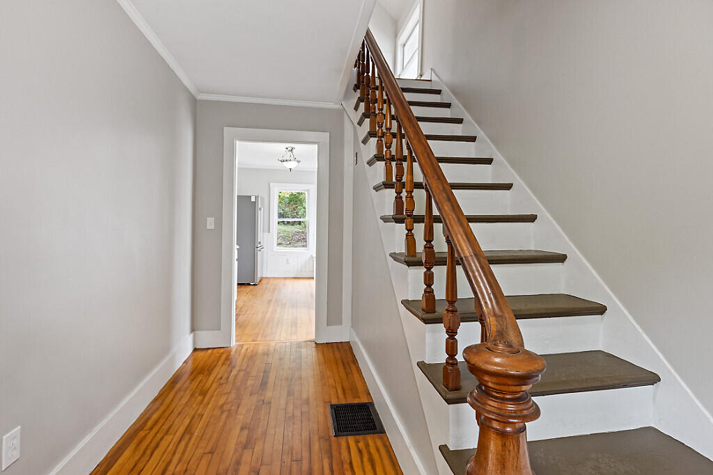 Welcome to 81 Middle Street in Hallowell, a charming in-town residence nestled in one of Maine's most desirable communities. Just a quarter mile from Vaughan Woods a 200-acre preserve with miles of scenic trails and only moments from downtown Hallowell's shops, galleries, cafs, and restaurants along the Kennebec River, this home offers the very best of Maine living. Inside, the layout is warm and inviting, with high ceilings, abundant natural light, and timeless character throughout. Currently offering two bedrooms, the home provides flexible living options: a first-floor room with double doors can easily serve as a third bedroom by closing it off from the dining room, while a full walk-up third floor offers the potential for additional finished living space or ample storage. Upstairs, the bedrooms feature stunning pumpkin pine floors, a quintessential New England detail that brings charm and warmth to the home. Thoughtful accents from the stone steps to the upper level of the back yard to the ornate handrail on the open staircase reflect the history and craftsmanship built into the property. Additional highlights include a natural gas furnace, fresh interior and exterior paint, and updated flooring making the home move-in ready. Outside, the manageable lot strikes the perfect balance, offering outdoor enjoyment without extensive upkeep. This home is a rare opportunity to own a beautifully maintained home in sought-after Hallowell, where history, nature, and community come together in one perfect setting.