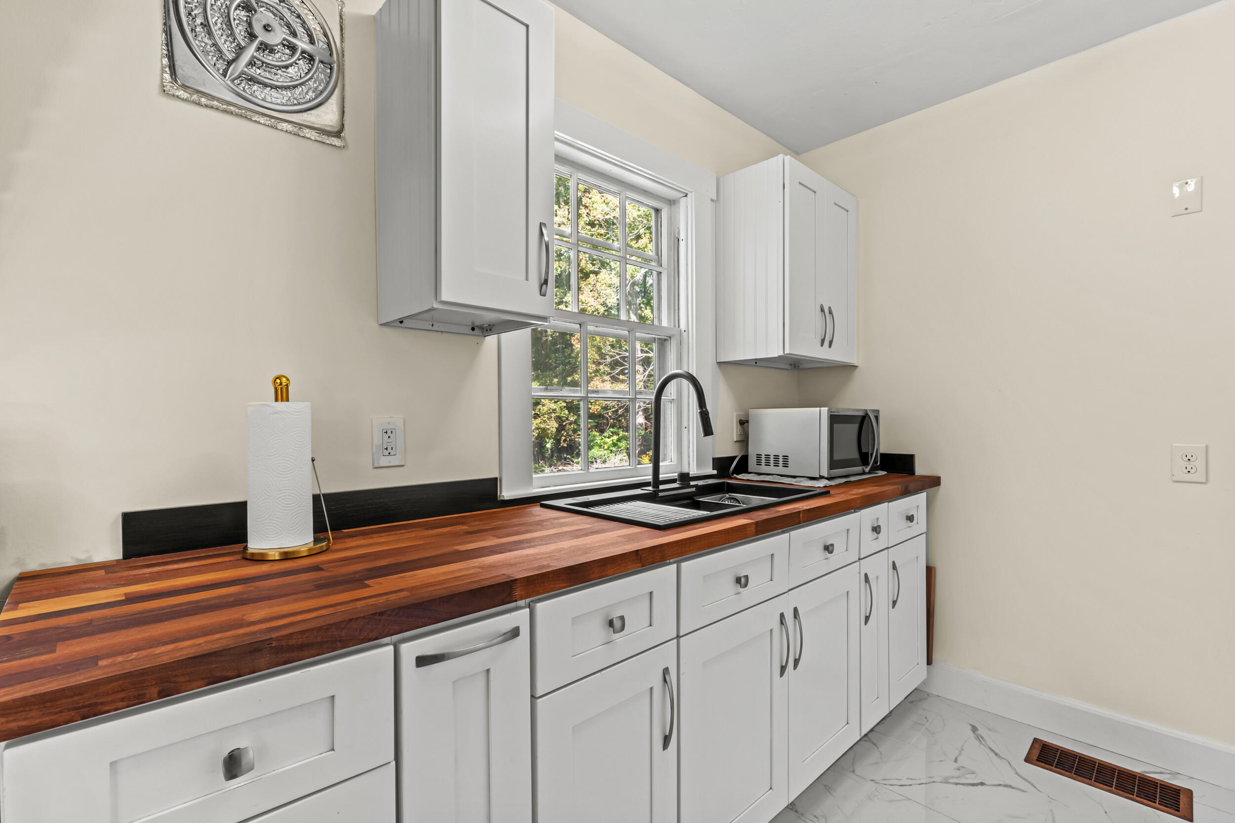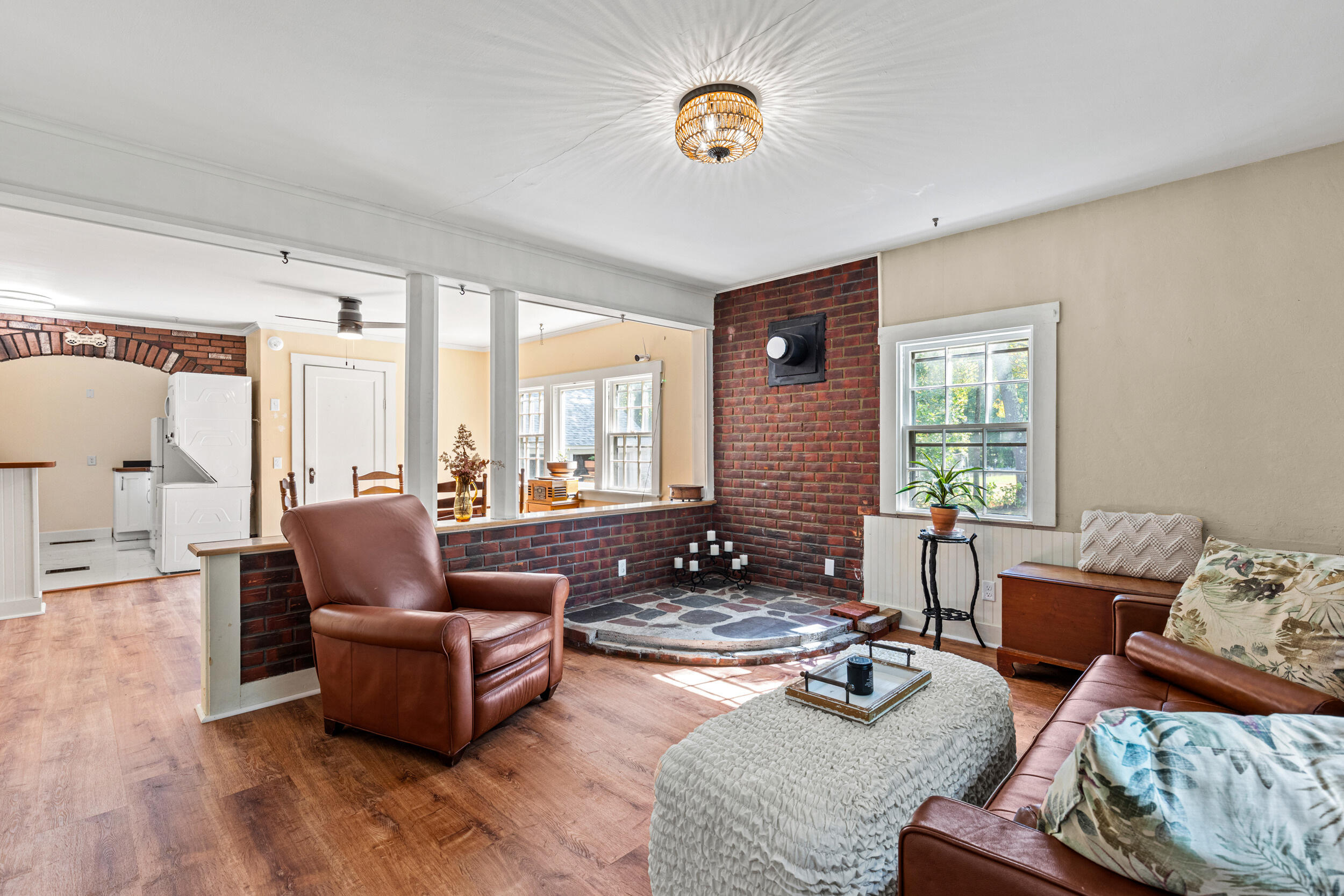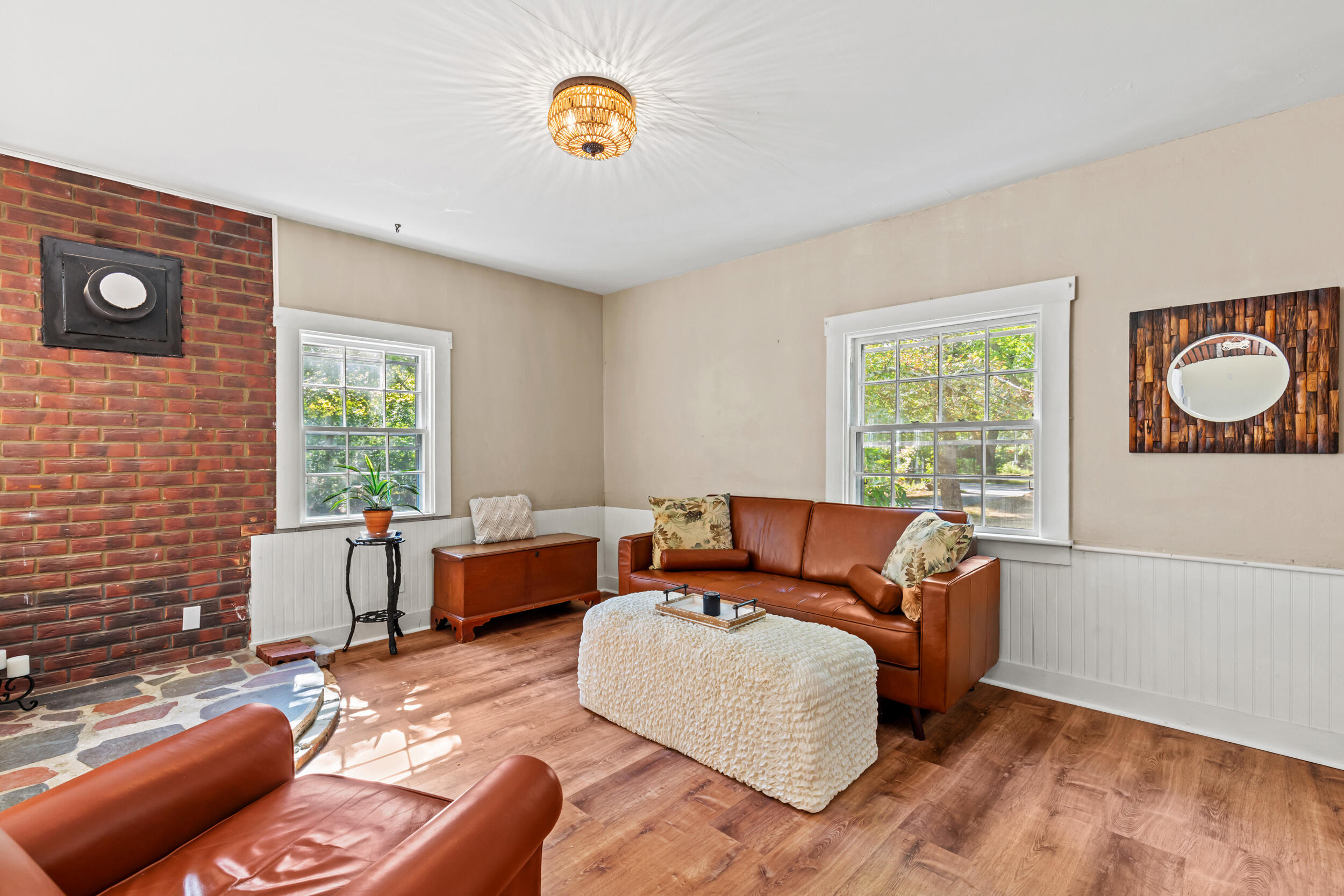 Welcome home to this beautifully updated 3-bedroom, 1.5-bath property set on 3 private acres. From the moment you step inside, you'll appreciate the charm and character paired with thoughtful modern updates. The spacious living room features a cozy fireplace and stunning wood floors, while the sunroom invites you to relax and soak in the natural light. The kitchen and bathrooms have been tastefully renovated, offering both style and functionality. A 2-car garage with workshop space is perfect for hobbies or storage, and the standby generator provides comfort and peace of mind in all seasons. Whether you're gathering with friends in the large living room, enjoying a quiet evening by the fire, or exploring the expansive outdoor space, this home offers the perfect blend of comfort, convenience, and timeless appeal-all in a great location.