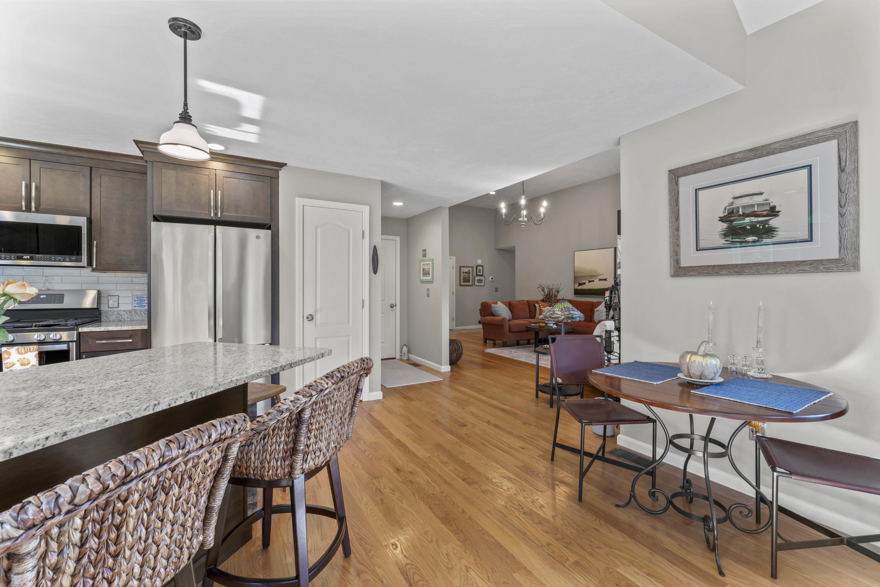 Open House! Sunday October 19th 11am-1pm. 1,534 sq./ft. 3-bedroom, 2 full bath Ranch with direct entry two car garage located in the very desirable Old Marsh community. Enjoy open concept, single floor living that's efficient while providing additional space for overflow. If golf is your thing, this is the place to be! Highly sought after end unit offering privacy but at the same time just an earshot from the golf course, clubhouse, tennis courts, and pool. Sipping your morning coffee from the spacious deck or custom stone patio is the standard not the exception while bird watching or just relaxing... Enjoy the picturesque landscaping and custom designed fire pit while entertaining family and friends. The layout of this design is sure to please! Interior upgrades to include primary bedroom suite with large walk-in closet, gas fireplace in living room, cathedral ceilings in the common areas, bright and airy sunroom drenched with natural light, hardwood throughout, central air, custom cabinets in the kitchen, granite counters, and stainless-steel appliances. Why settle for an older home riddled with deferred maintenance when you can have the option of almost new construction. This home was designed and built with the utmost in efficiency, very low-cost upkeep, and designer creativity. No better time to purchase in Old Marsh considering the golf course and clubhouse are now under new ownership! Many improvements and upgrades are soon to follow! If purchasing a home in Old Marsh, the waitlist for membership to the golf club does not apply! The new owner will become a member immediately! Must be seen!!