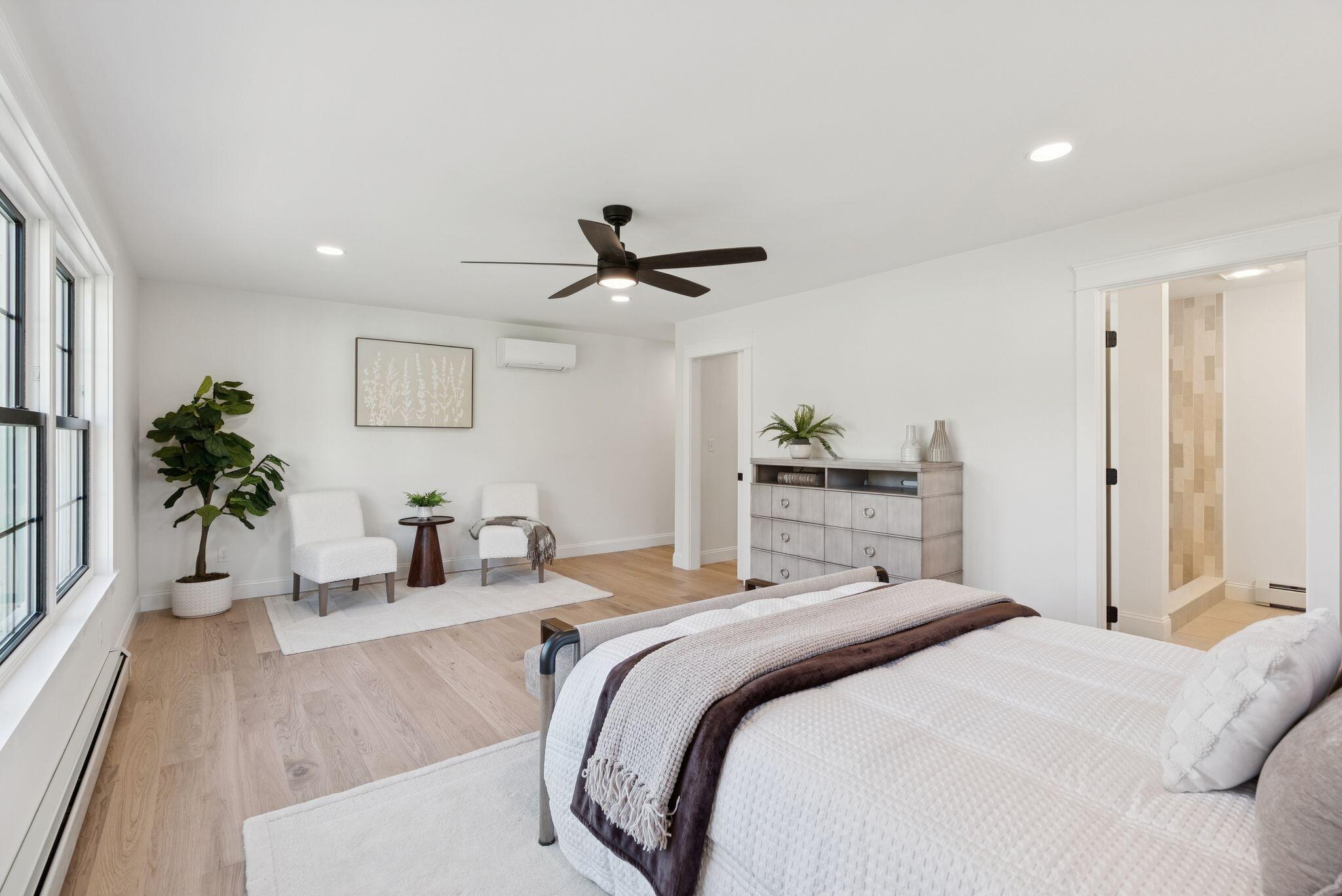 A refined expression of contemporary living, 4 Furbish Lane marries design-forward style with enduring comfort on a quiet private road in West Kennebunk. Thoughtfully sited on 0.78 acres, this 2,208 square feet new construction balances privacy and poise. A tailored entry sets the tone: a custom built-in bench with a live-edge wood seat, a proper coat closet, and a well-placed powder room create a gracious separation from the main living areas. White-oak engineered flooring runs throughout and black-framed windows with custom millwork lend a clean architectural edge. At the heart of the home, the gourmet kitchen features two-toned slim-shaker cabinetry, quartz countertops, a custom range hood, timeless subway tile, stainless-steel appliances, and a walk-in pantry of exceptional scale. The kitchen opens to the dining area and an airy living room anchored by a gas fireplace-an elegant setting for everyday living and effortless entertaining. A glass sliding door extends the experience to a private composite deck overlooking the peaceful woodlands. Upstairs, the oversized primary suite is a serene retreat with a generous walk-in closet and spa-style bath offering a tiled shower, quartz double vanity, and sophisticated finishes. Three additional bedrooms are gracious in scale and share a large second full bath. A dedicated walk-in laundry room with utility sink and built-ins elevates daily function. Below, a daylight unfinished basement invites future expansion-fitness, media, or guest space. Quiet luxury continues behind the walls: a high-efficiency Viessmann boiler, heat-pump water heater, air exchanger, and radon mitigation system support year-round comfort and peace of mind. Composed with an eye for quality and livability, 4 Furbish Lane delivers polished, modern comfort in a perfectly convenient Kennebunk setting. Within minutes to Kennebunk schools, Main Street conveniences, Kennebunkport, I-95, and the Alewive Woods Preserve. Make it yours today!